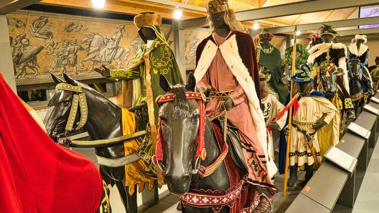 In der Bibliothek „Alte Lateinschule“ sind die edlen Roben zu bewundern. Sie wurden alle von Hand aus Brokat, Samt und Seide genäht und haben wunderschöne Stickereien. Auch Rüstungen und Waffen sind zu sehen.